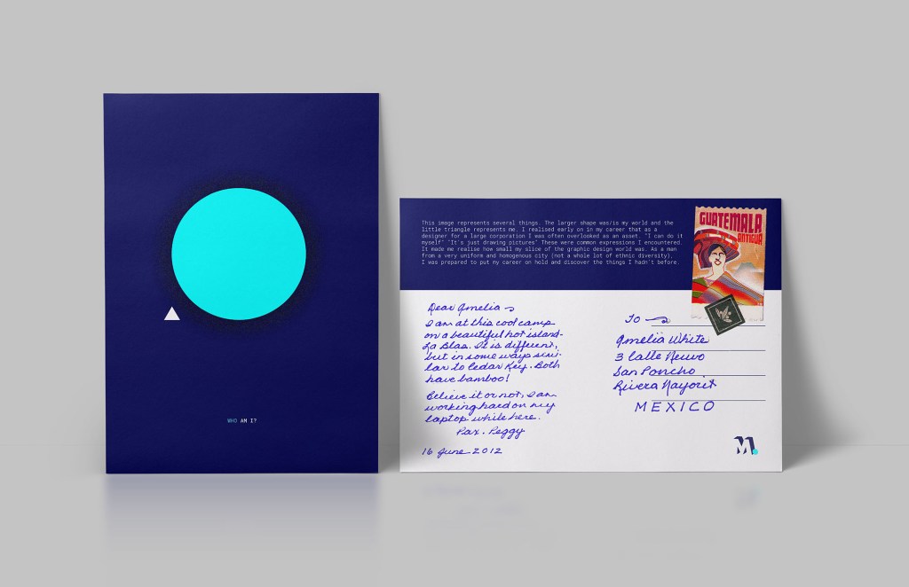 This image represents several things. The larger shape was/is my world and the little triangle represents me. I realised early on in my career that as a designer for a large corporation I was often overlooked as an asset. “I can do it myself” “It’s just drawing pictures” These were common expressions I encountered. It made me realise how small my slice of the graphic design world was. As a man from a very uniform and homogenous city (not a whole lot of ethnic diversity), I was prepared to put my career on hold and discover the things I hadn’t before.