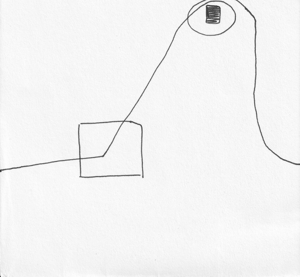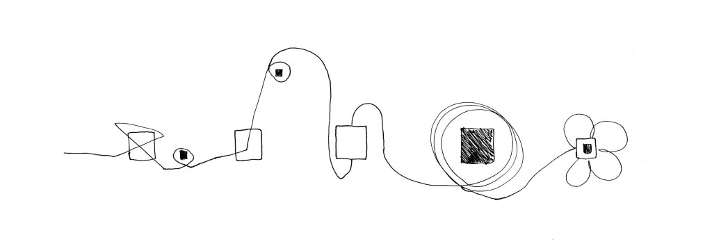 After getting feedback from Sarah and peers I decided to give this outcome some more life. Rather than just looking like a quick sketch I have made it into more of an art piece. I used string and coloured card to represent all of the elements. Sarah had the idea of using string and just seeing where it fell onto the page. This was great but I felt it didn’t really fit with the linear unrelenting thought process. In the end I decided to go for harsh turns and straight lines as I felt this fit better. I also added a legend to the piece as per Winnie’s suggestion, to make each element clearer.