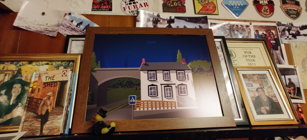 While the building is more or less the same, the train and tracks are gone and been converted into a cycle path. I’ve used contrasting colours for the background emulating different stages of a sunset. 1931 being the bright age of industrialism for the pub and 2020 being gloomy and forgotten. If I had a load more time I would love to make the modern illustration look even more run down and overgrown. Alas, these illustrations take far too long to produce so I’ll leave it here. For the future perhaps?