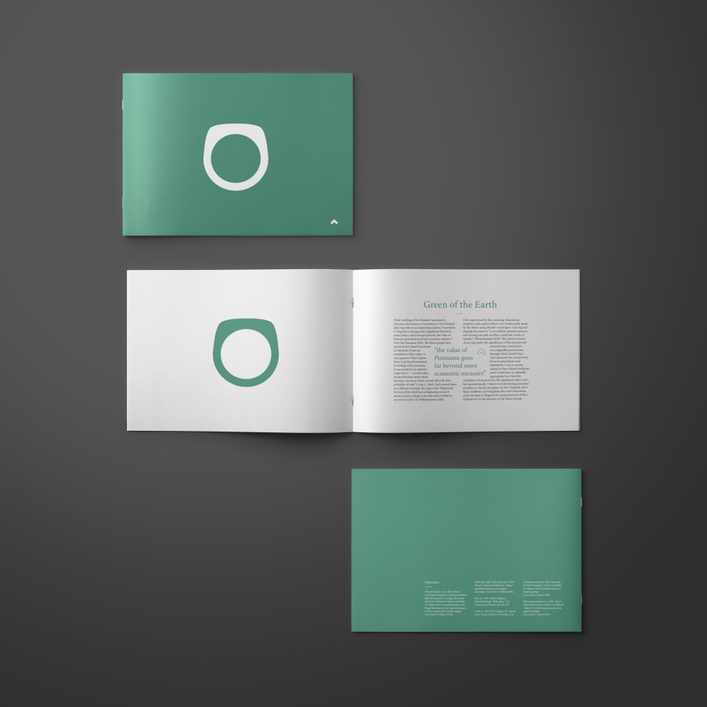 After talking to Sarah and peers in our weekly feedback sessions, It became apparent that my outcome didn’t match what my text was trying to convey. The text is all about the immense material value that the Maori people have for pounamu. I decided to revisit and convey this through my use of materials and presentation.