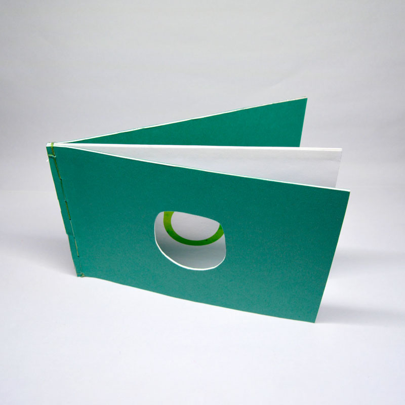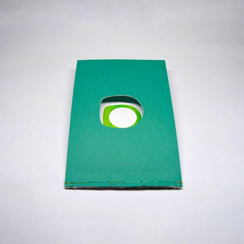 I used 700gsm paper stock to give this 3 page book some heft. I also used premium multigreen thread to give the book a handmade Japanese bind. There is a die-cut in the front panel acting as a window into the ring. I wanted the book to feel more expensive and precious while using materials that I have on hand. I started off this process wanting the front panel and last panel to be made out of a slab of jade, encasing the paper between. I would have loved to see this but I couldn’t mock it up in a way that I liked.