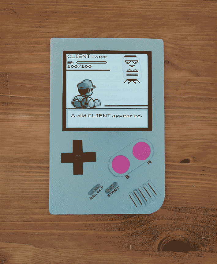 After I was happy with the story it was time for the hard graft of illustrating them all in the pixel art black and white style that I was using. Next I decided that I wanted to print out each of the screens and make a simple stop motion to go through them as If it was a real game. I wasn’t happy to just have squares of paper, I needed to give them a context or reason for them to be printed. I needed something to play the game on. To match the printed paper style, a papercraft gameboy was created.