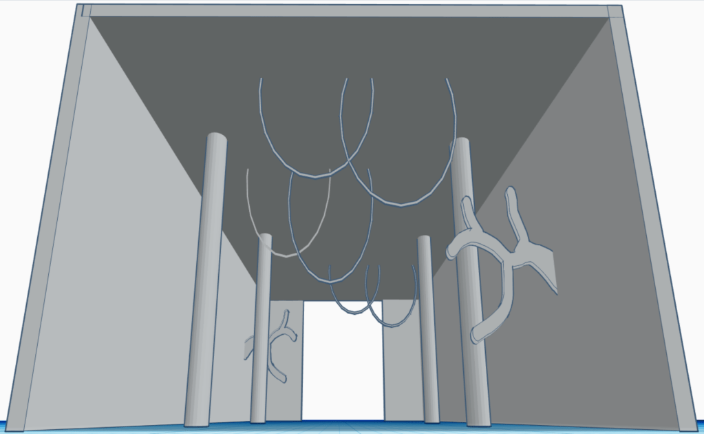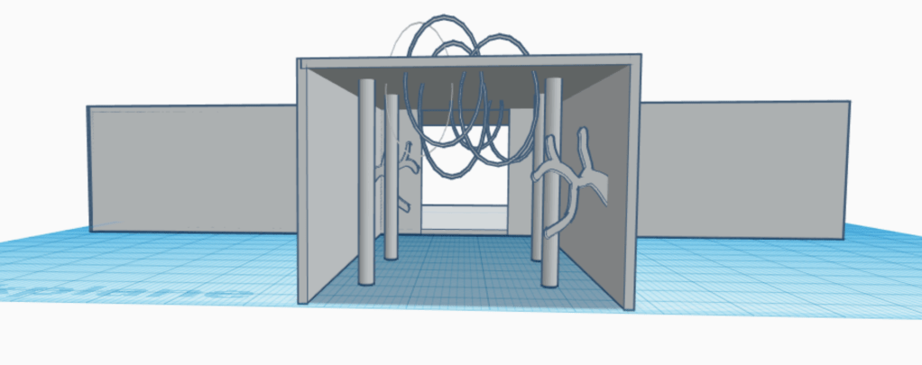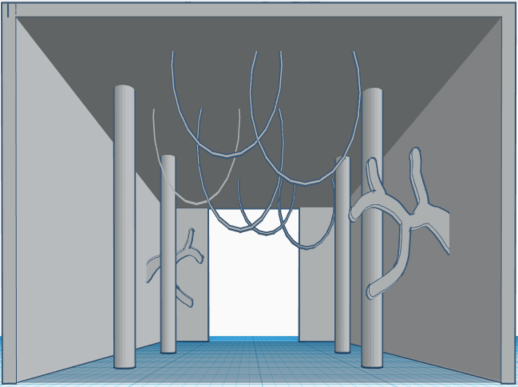 The outcome this week is more of a mock up as this would be very costly and real life and the Tilt Brush platform isn’t quite ready for multiple people working on the same document at the same time. I have however drawn a possible interactive hallway in which participants would walk down on their way to the gallery. In VR, this is shown as a cave with roots sticking out of the walls, and vines/ropes hanging from above. These trees and roots would be recreated in the physical world. This would mean that when touched in VR, you could feel them in real life.